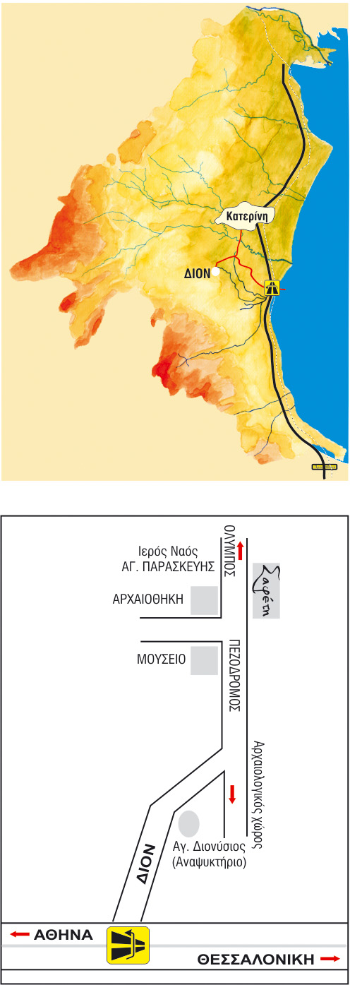 Η πρόσβαση στο Δίον είναι πολύ εύκολη, μόλις 6 λεπτά από την Εθνική οδό.