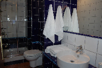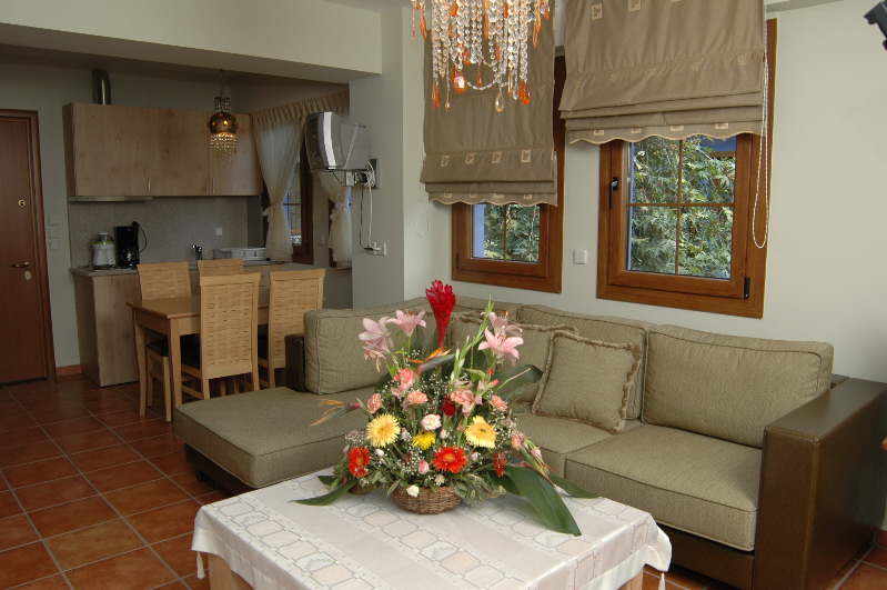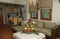 sitting-room including fireplace, telephone, satellite TV broadcasting a hundred of channels, dining room and kitchen with all the necessary electric appliances such as coffee pot, toaster, appliance used for squeezing the juice out of fruits, kettle, electric iron, bedroom with TV and telephone available, bathroom with hairdryer